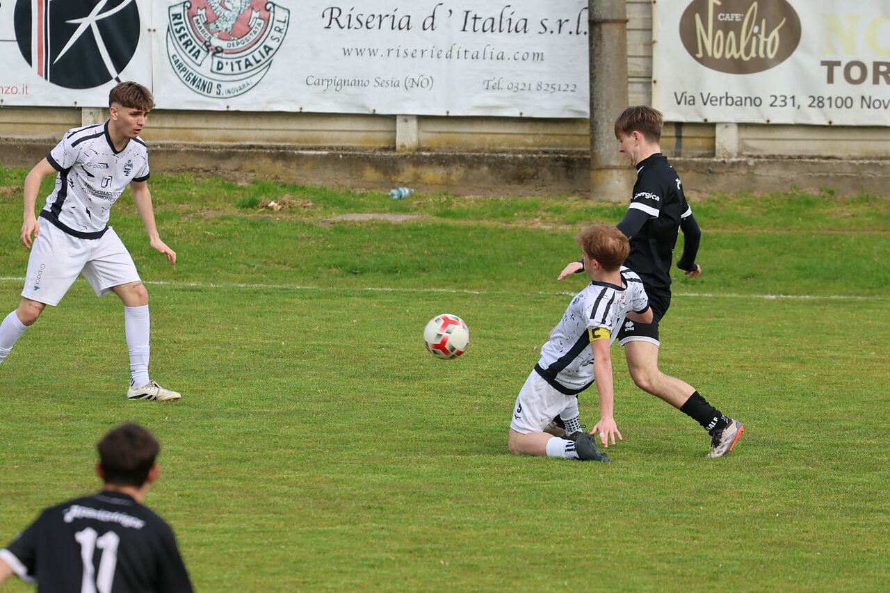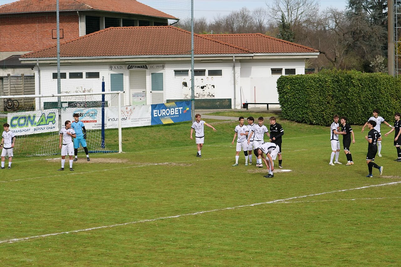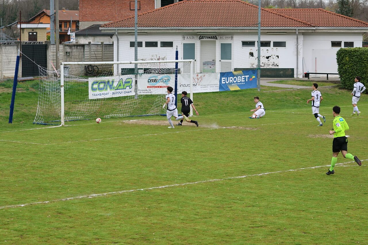 Gattinara – Le formazioni under 19 di Gattinara e Casale, si trovano l’una di fronte all’altra dopo aver disputato (e vinto) i recuperi del mercoledì precedente. I bianconeri di casa stanno attraversando il momento migliore della stagione a livello fisico, tecnico e di risultati. Il Casale di Maccarini, dopo aver conquistato il secondo posto, non vuole smettere di sognare. Padroni di casa in campo con: Carlin, De Ambrosi, Bouaziz, Colasante, Ceresa, Giacopelli, Cerchier, Mazzon, Rastelli, Migliarini e Zaninetti. Gli ospiti replicano con Camillo tra i pali; Serangeli, Mezzano, Cavriani, Davin in difesa; Ferraris, Bersano, Cerruti a centrocampo; Rosso, Boja, Gega in attacco. Terreno in discrete condizioni e direzione affidata al signor Riffi della sezione di Biella. Non passa nemmeno un minuto e per il Casale arriva la prima occasione da gol. Feraris serve sulla corsa Rosso: diagonale rasoterra che supera il portiere, ma che sfiora il palo terminando a lato. La risposta del Gattinara è frutto di un’indecisione difensiva dei nerostellati. Il tiro di Cerchier è bloccato da Camillo (8’). Il capitano di casa tenta su punizione al 12’, ma non inquadra il bersaglio. Gli ospiti aumentano il ritmo e Cerruti al 14’ impegna centralmente Carlin. Ancora Cerruti (15’) questa volta da assist-man. Palla a Boja e conclusione sull’esterno della rete. Il vantaggio del Casale giunge al 29’; Davin dal limite costringe Carlin ad una respinta difficile. Sulla palla si avventa Boja che serve Gega sul secondo palo: 0-1. Dopo una punizione alta di Davin al 37’ ed una ammonizione recapitata a Rastelli al 42’, il Gattinara pareggia. Calcio d’angolo e pallone che supera il castello a zona dei nerostellati. A Bouaziz non sembra neanche vero. Senza staccare, ha tempo e spazio per indirizzare alla spalle di Camillo. E’ il primo errore difensivo del Casale e costa carissimo. Prima del riposo (47’) Cerruti serve Boja in area: rasoterra chirurgico che colpisce la base del palo e torna in campo, ma nessuno è pronto per ribadire in gol.